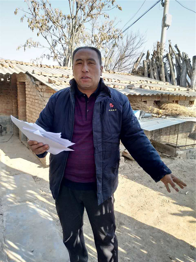 更讓我生氣的是,我去包村單位縣政府辦,找楊主任要精準(zhǔn)扶貧修雞舍的錢,他二話不說(shuō),直接推我,把我往辦公室外面推,顯得不耐煩地說(shuō),去去去,出去、出去!我從樓上往下走的時(shí)候,眼淚都忍不住掉下來(lái)了……