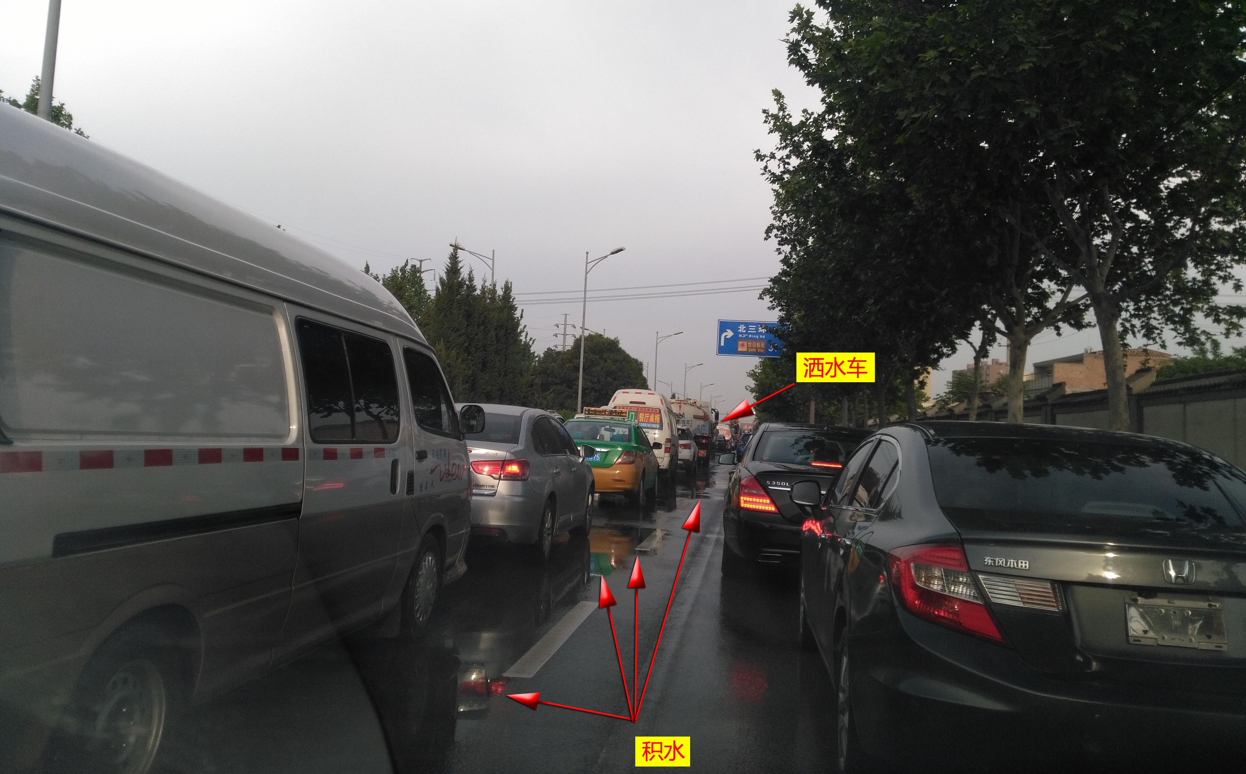 結(jié)果是道路上隨處都是一塊一塊的積水,有時(shí)車(chē)輛通過(guò)后濺起積水,非常容易濺到路邊騎行以及步行的人身上。還有的騎行人為了躲避積水,左拐右拐,有時(shí)騎到機(jī)動(dòng)車(chē)道上來(lái),特別的危險(xiǎn)。