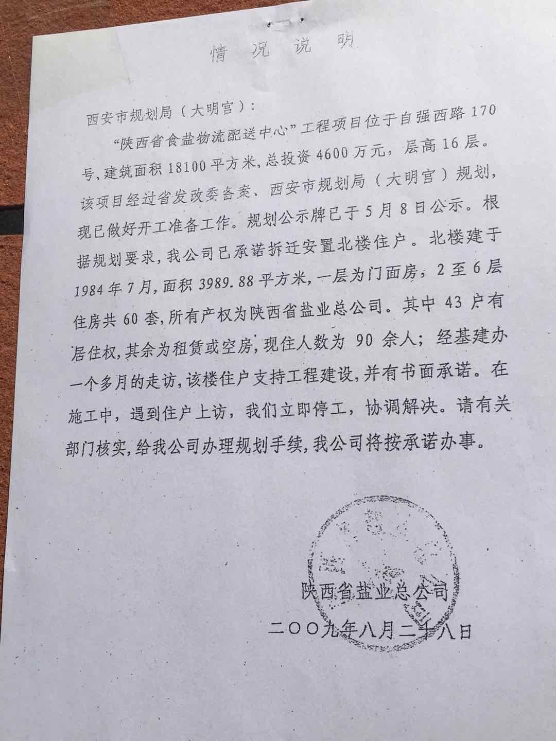 我們業(yè)主已向西安市各部門反映,但因?qū)κ〖?jí)單位無(wú)管轄權(quán)問(wèn)題無(wú)法解決,請(qǐng)省政府、紀(jì)委督促鹽務(wù)局盡快履行拆除承諾,調(diào)查是否存在利益輸送問(wèn)題,否則我們將繼續(xù)采取各種手段維權(quán)。