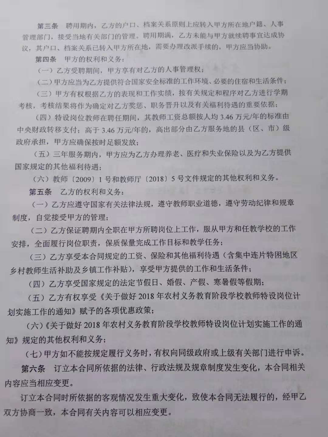 一天、十天、一個月,轉(zhuǎn)眼三個月到了,久久不見消息,除了三年后上編制之外,必須在三年內(nèi)所有福利都是按當(dāng)?shù)赜芯幹平處煿べY待遇教,合同上清楚的寫著特崗教師不低于當(dāng)?shù)卦诼氃诰幗處煿べY,高出的部分當(dāng)?shù)刂С?,也就是補助是當(dāng)?shù)亟o,可現(xiàn)在我們上班幾個月,未見到合同上說的按時足額發(fā)放,取暖費等等什么也沒有,2017年的特崗教師也問過縣上,一句縣上一毛錢沒有就打發(fā)了,合同上包括貧困縣也需履行,請問縣上各學(xué)校幾十萬買東西的錢財政局有,給把青春播撒在鄉(xiāng)鎮(zhèn)上的教師應(yīng)有的補助就沒有了嗎?