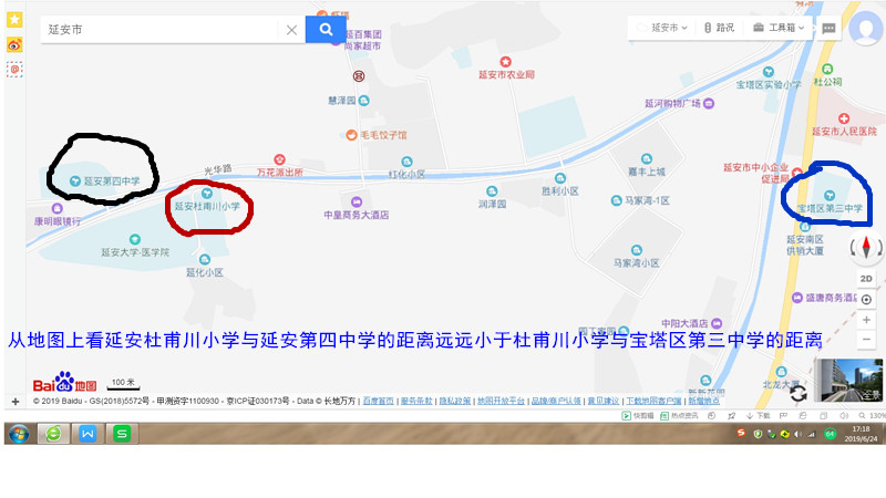 三、延安育英中學(xué)、延安興華中學(xué)與杜甫川小學(xué)的距離遠(yuǎn)遠(yuǎn)大于寶塔區(qū)第三中學(xué)與杜甫川小學(xué)的距離,根本不適合劃分為一個(gè)學(xué)區(qū)。
