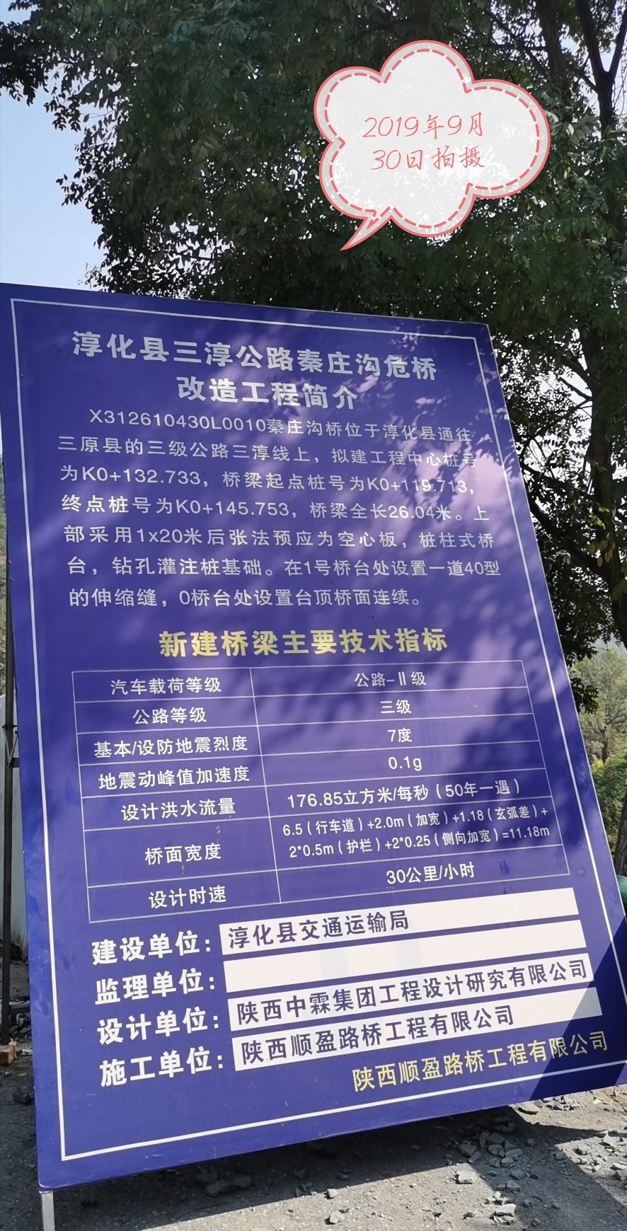 印象中淳化縣三淳公路秦莊溝危橋改造工程當時公示工期為2019年7月15日至2019年10月底??墒牵瑢⒔荒陼r間過去了,這條交通要道遲遲沒有完工……