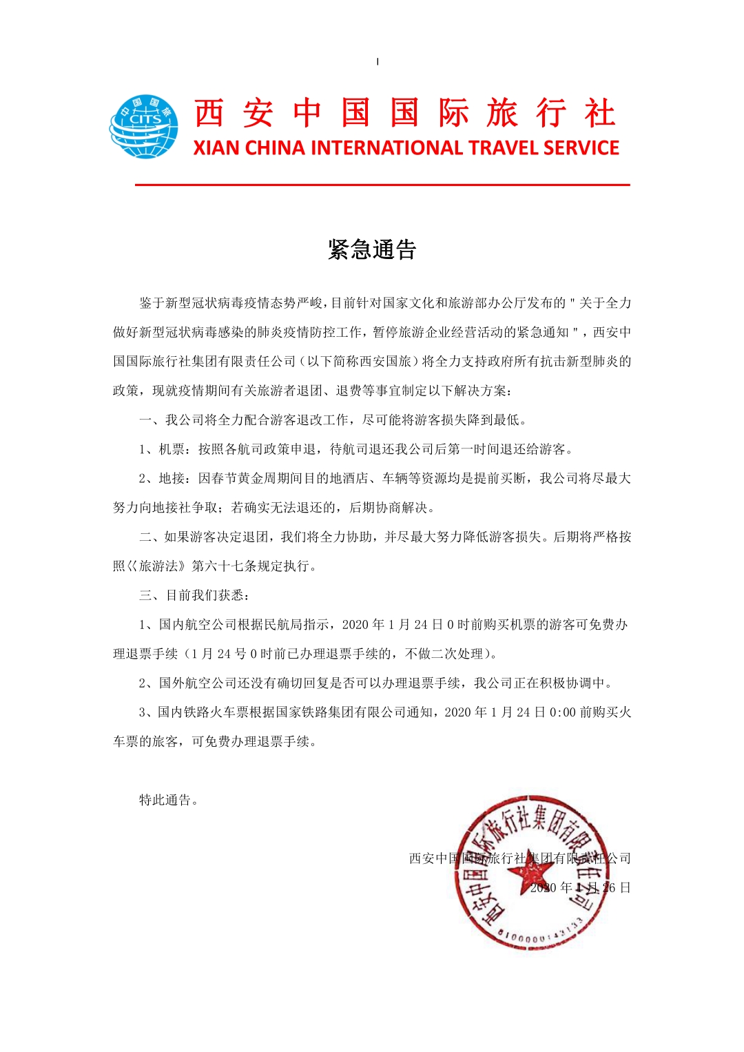 在這大半年來我的奔走相告和反復扯皮,但是西安國旅就是不給消費者退款。直到現在仍未給出一個明確的處理方案,為此我希望西安中國國際旅行社集團有限責任公司盡快給我退費和道歉。我查看了之前我和西安中國國際旅行社集團有限責任公司簽訂的旅游合同,其中第八條規(guī)定:“ 因不可抗力或者已盡合理注意義務仍不能避免的事件解除合同 因不可抗力或者出境社、履行輔助人已盡合理注意義務仍不能避免的事件,影響旅游行程,合同不能繼續(xù)履行的,出境社和旅游者均可以解除合同;合同不能完全履行,旅游者不同意變更的,可以解除合同。 合同解除的,出境社應當在扣除已向地接社或者履行輔助人支付且不可退還的費用后,將余款退還旅游者?!钡俏靼仓袊鴩H旅行社集團有限責任公司一直在推諉扯皮,不與客戶積極協(xié)商處理,絲毫沒有感受到旅行社的誠意。