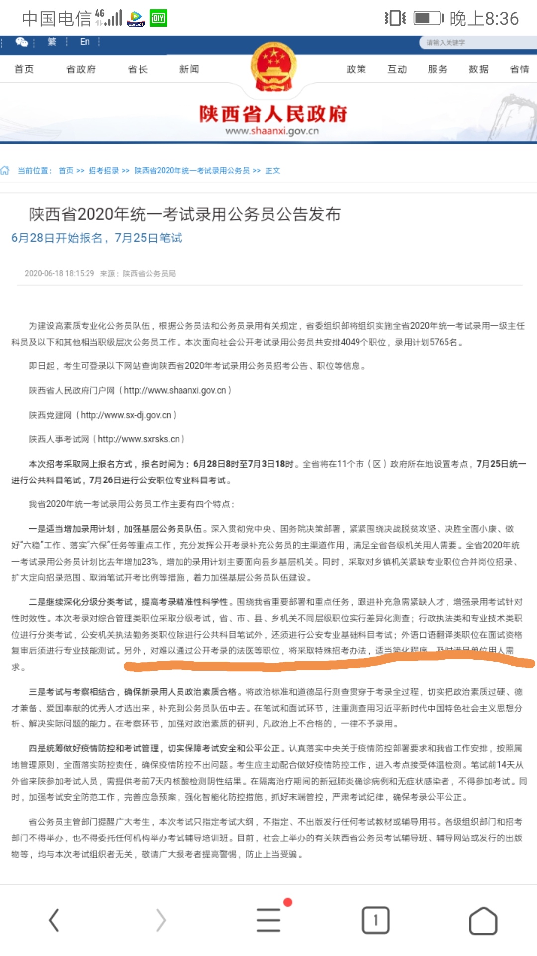 今年6月省公務(wù)員局發(fā)布了《陜西省2020年統(tǒng)一考試錄用公務(wù)員公告發(fā)布》,說明了2020年公務(wù)員錄用工作的四個特點,第二個特點指出,“對于難以通過公開招錄的法醫(yī)等職位,將采取特殊招考辦法”,想咨詢今年(2020年)是否還會針對法醫(yī)等特殊職位進行招錄?如招錄大約什么時間組織?將采取何種形式?招錄信息是否還會公開發(fā)布?盼復(fù),謝謝。