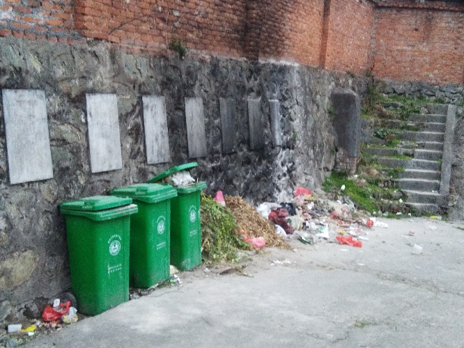 略陽縣接官亭鎮(zhèn)何家?guī)r社區(qū)老政府門前垃圾遍地,垃圾桶竟然集中擺在門口路邊。