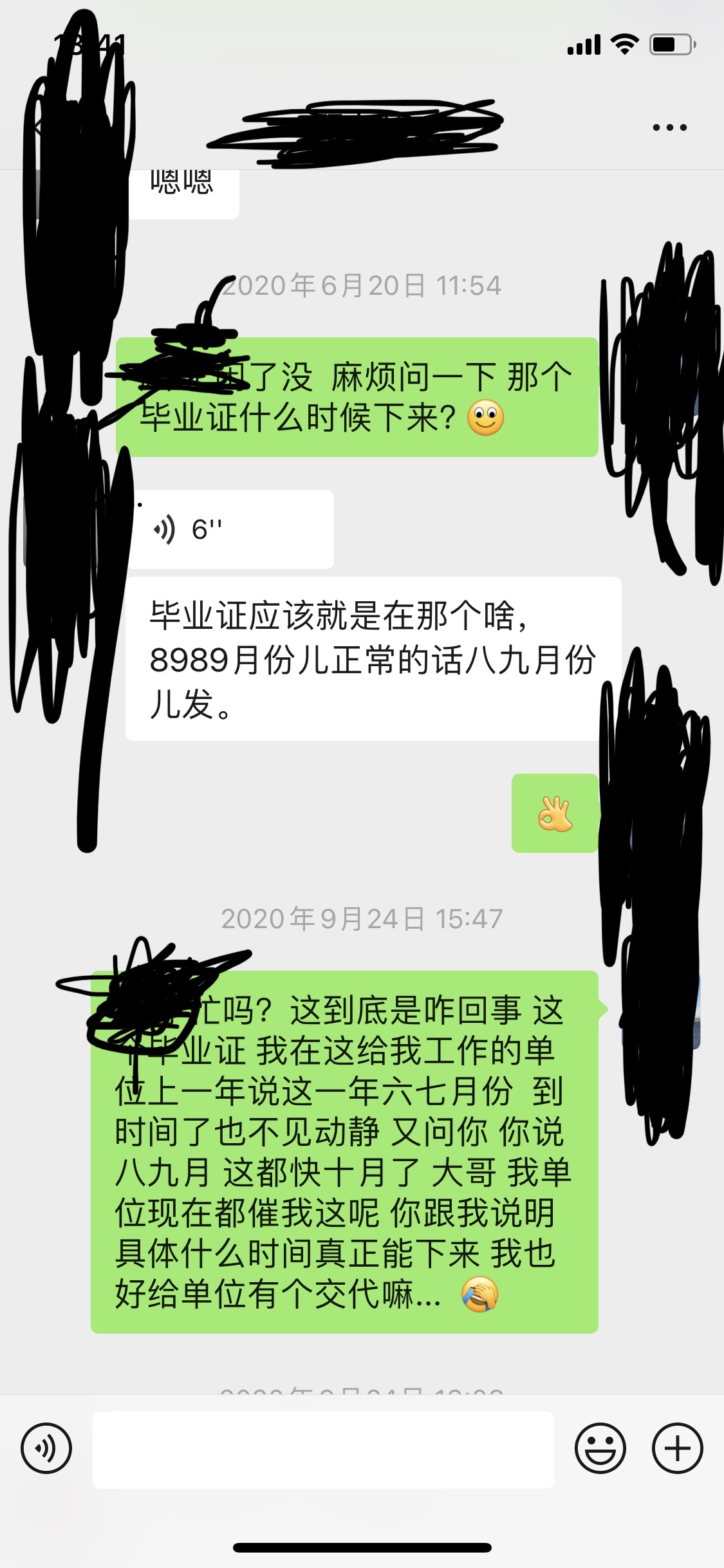我從2016年進(jìn)入這個(gè)3+1學(xué)校就讀到了2019年中旬,開始實(shí)習(xí)說的是第四年可以不在學(xué)校待,把學(xué)費(fèi)交了2020年中旬就發(fā)畢業(yè)證,要學(xué)費(fèi)的時(shí)候真把話說的冠冕堂皇。到了2020年6月份又說10月份發(fā),可到了10月份有時(shí)候發(fā)消息連理都不理。
