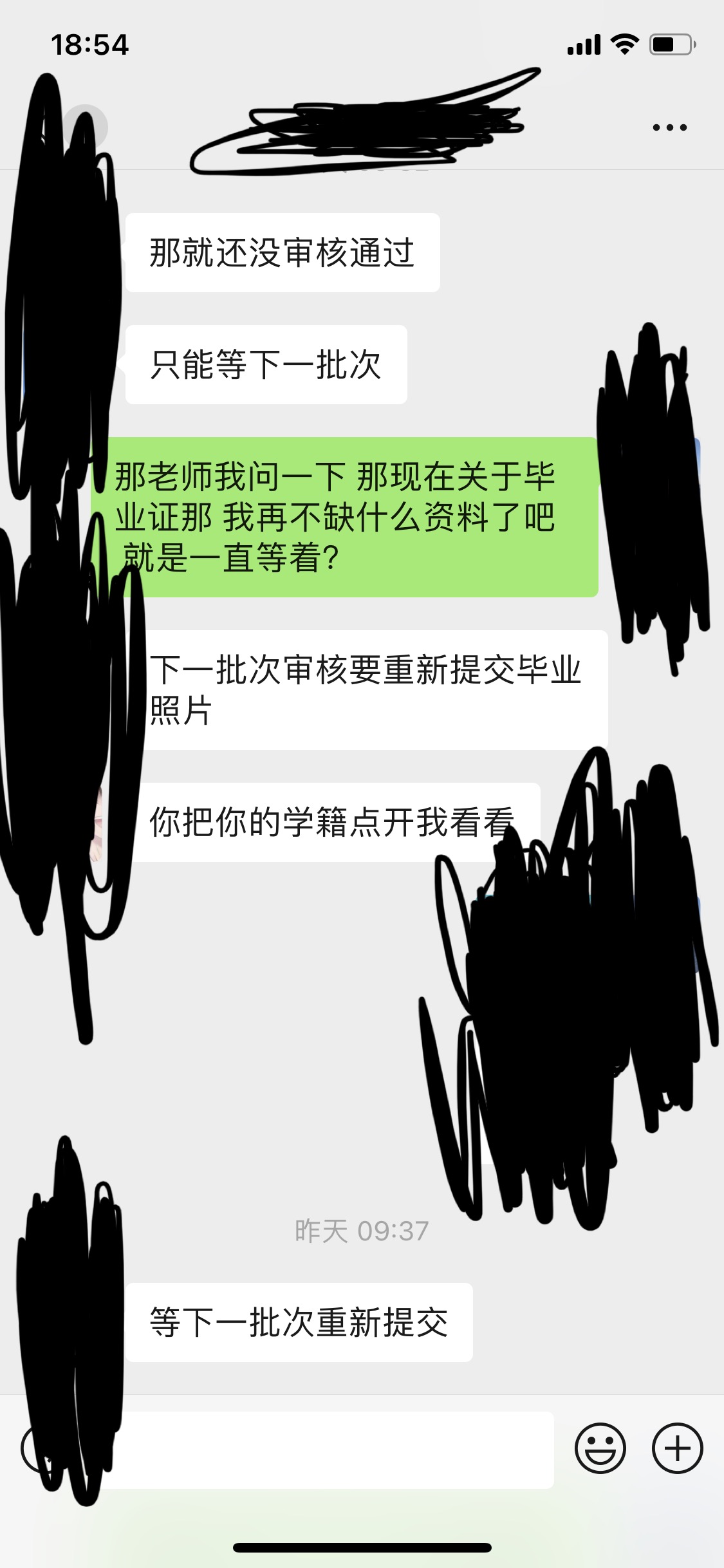 我堅(jiān)持到了2021年,實(shí)在等不住6月份下學(xué)校去找了校方,跟我又說需要電子照片交了,說9月底就能下來。可到了9月底又說沒審批過要等到2022年繼續(xù)審批,而我從2019年6月份出來實(shí)習(xí),進(jìn)了蘭州一個(gè)單位,一直算的實(shí)習(xí)工資1700,我真不知道怎么辦了。(西安市灞橋區(qū)白鹿原大學(xué)城海棠學(xué)校附近)