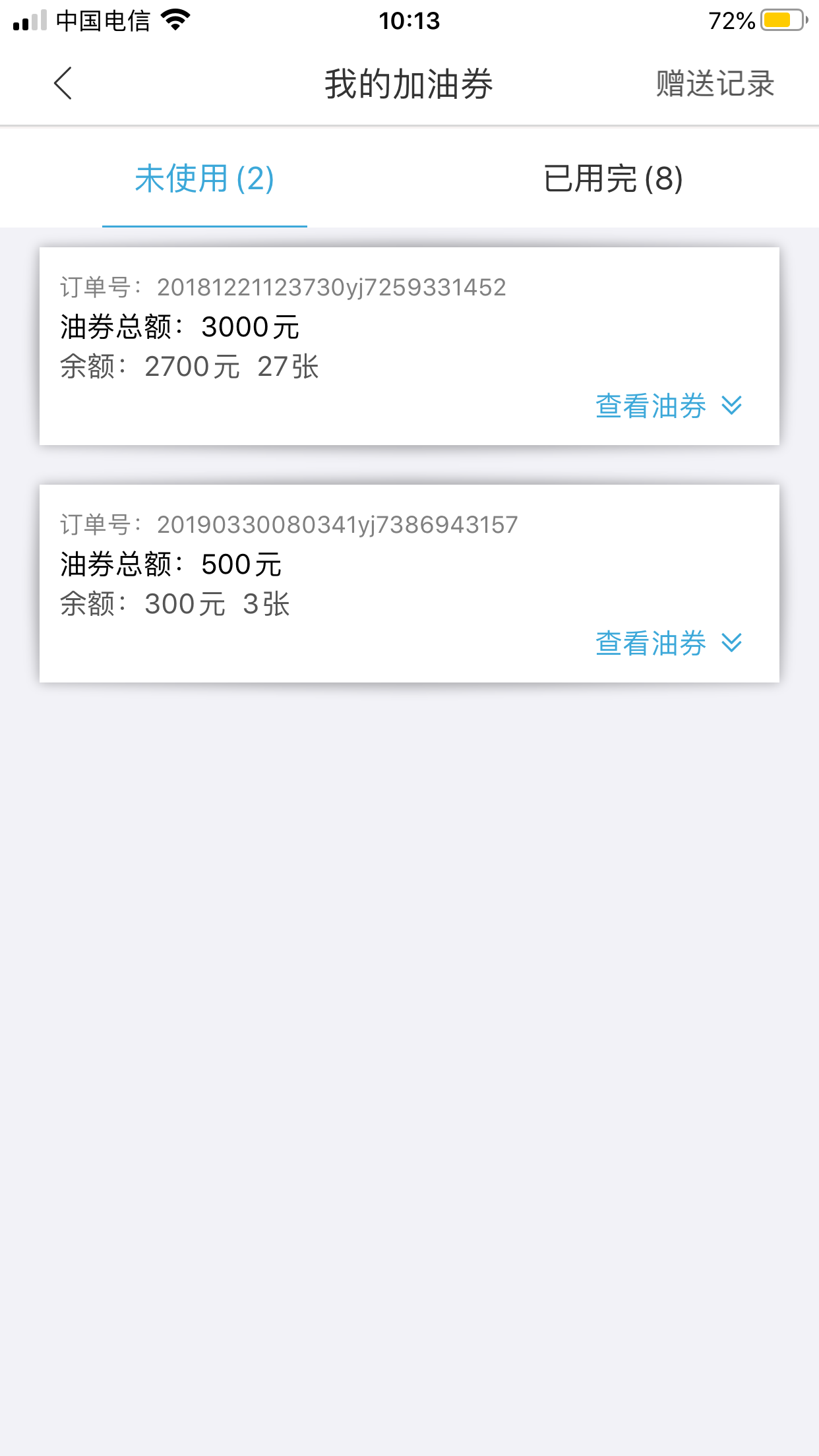 本人于2018年12月至2019年11月通過優(yōu)享購(gòu)油小程序購(gòu)買5600元加油卡,還有金額5000元油卡尚未使用。