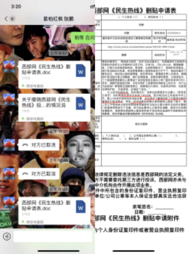 20日,站長張鵬發(fā)來的申請書內(nèi)容,嚴重歪曲事實(詳細看附件圖片) 。我本人實名舉報投訴,卻被他們?yōu)榱顺诽?,為了建設留壩而詆毀我的發(fā)聲,還求著我刪帖,還讓我給身份復印件! 難道民生熱線投訴舉報是兒戲?求我撤帖,還抹黑事實,還讓我簽字,這還是為人民服務的事業(yè)單位做事的態(tài)度?
