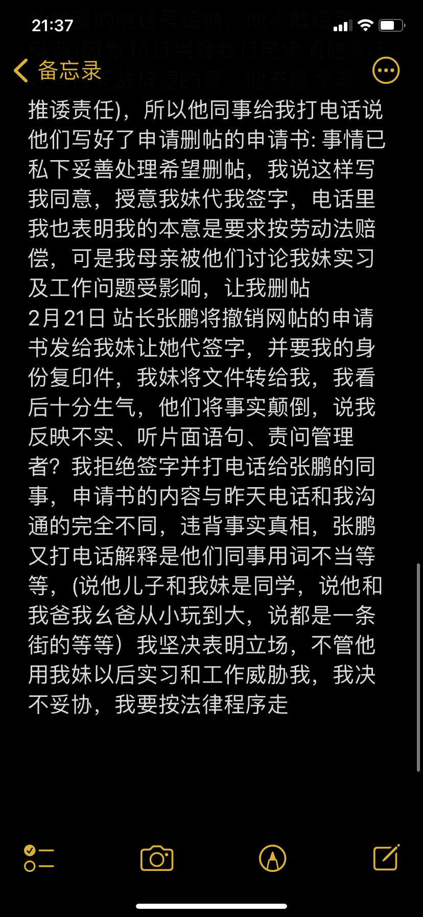 我在此發(fā)出質疑:專人組調(diào)查我母親被無故辭退的事,為何要扯到我妹的實習和工作?這算是威脅嗎?