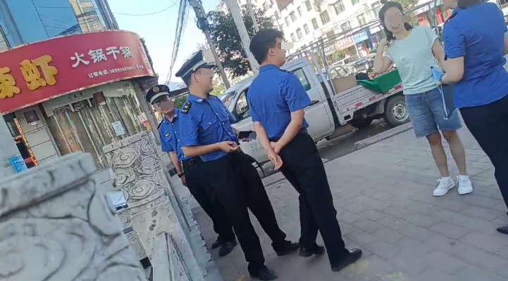 該男子對趕來的城管車上的人說:“把這車給鎖了”我就說我現(xiàn)在就走,他說:“把秤交出來到時候去城管局解決,城管局在消防隊隔壁?!蔽揖驼f我不給,后來他們兩輛執(zhí)法車一共10幾個人團(tuán)團(tuán)圍住七嘴八舌說我一個人,全程沒有開執(zhí)法記錄儀,這期間他們把我車輪子鎖住。