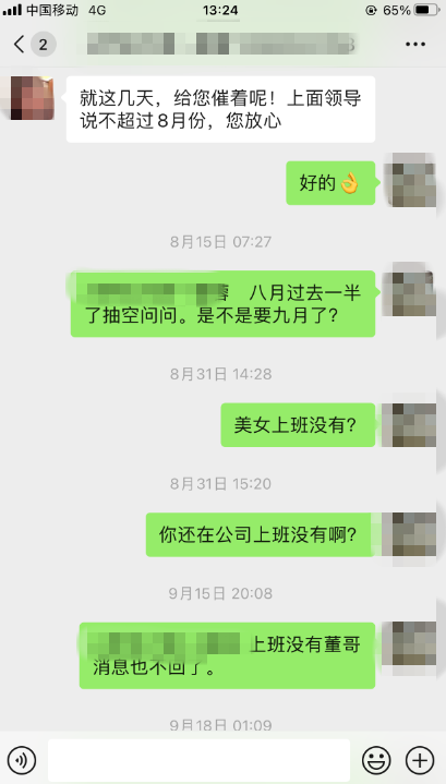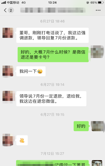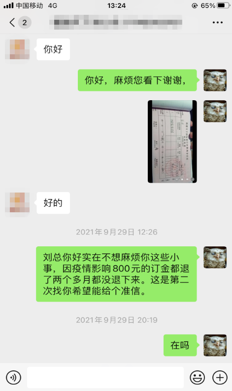 西部網(wǎng)民生熱線:你好,我是于2021年七月份準(zhǔn)備從成都來西安旅游。我當(dāng)時(shí)是用手機(jī)在網(wǎng)上聯(lián)系的西安“福游天下國(guó)際旅行社陜西分公司”的業(yè)務(wù)員,網(wǎng)名“夢(mèng)回大唐—蓉蓉”聯(lián)系好后用微信支付了800元押金。臨出發(fā)前二天成都出現(xiàn)了疫情并收到政府和單位通知不準(zhǔn)離蓉,并把相關(guān)文件發(fā)給該旅行社業(yè)務(wù)員“蓉蓉”取得理解并同意退還押金。(其它自費(fèi)項(xiàng)目的費(fèi)用兩天后都退了)唯獨(dú)該押金一拖再拖總是百般理由借口,直至今年八月份該公司的業(yè)務(wù)員和經(jīng)理信息不再回電話不再接。迫于無奈想請(qǐng)“西部民生熱線”幫忙追回押金,我還是很喜歡西安的,有機(jī)會(huì)一定要去好好旅游。