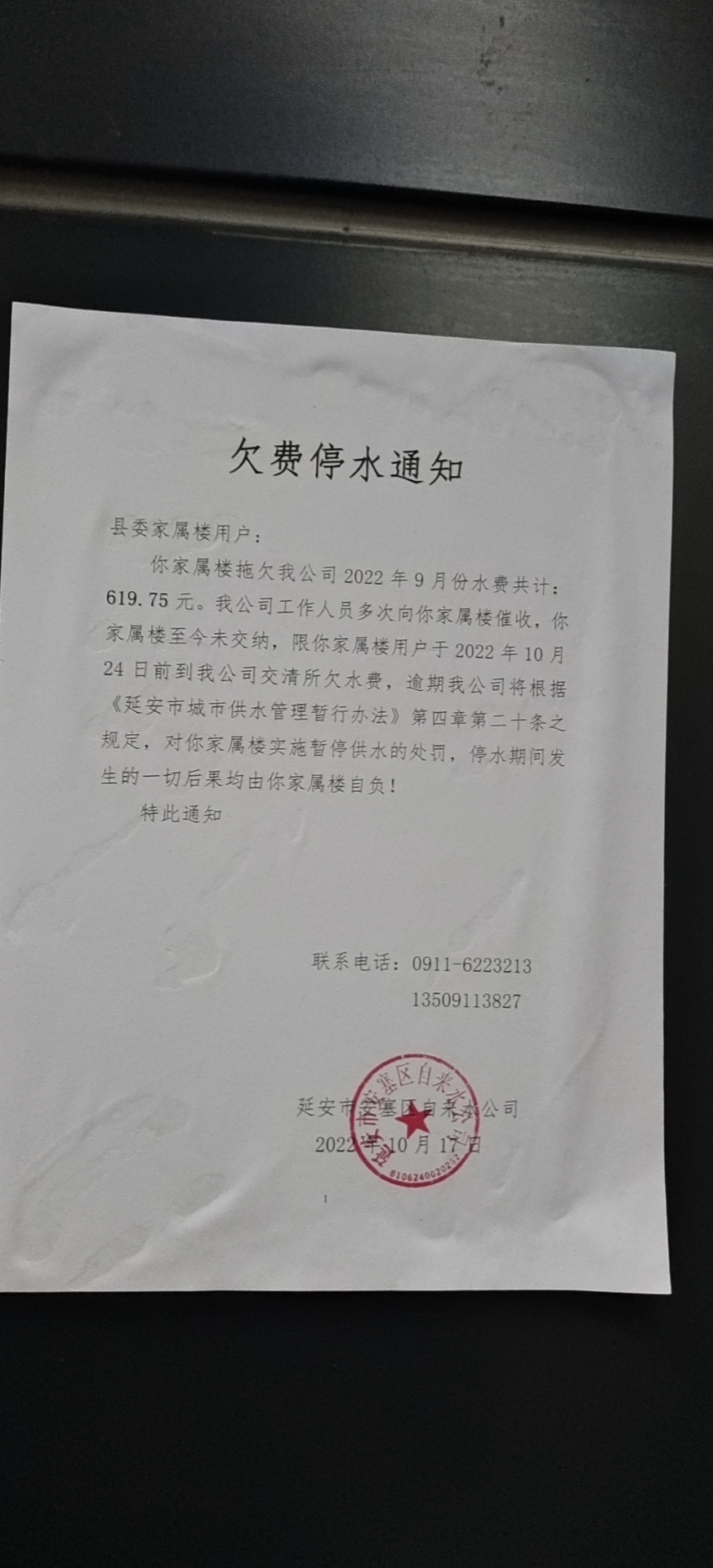 安塞區(qū)縣委家屬樓因一住戶拖欠水費(fèi)整棟被停水