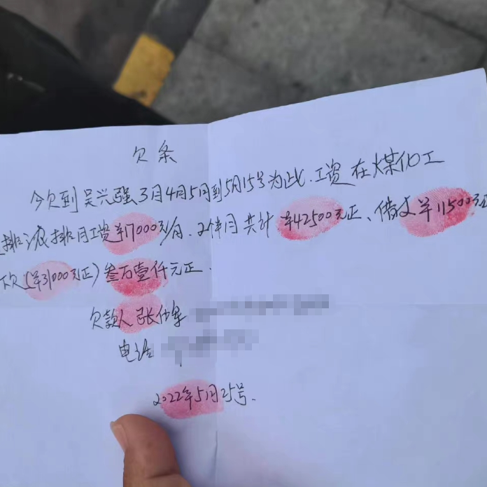 農(nóng)民工吳先生求助:2022年3月初,吳先生進入陜西黃陵煤化工有限責任公司全廠水資源綜合利用及零排放項目,從事施工現(xiàn)場管理工作,干到5月15日,至今被拖欠工資31000元。