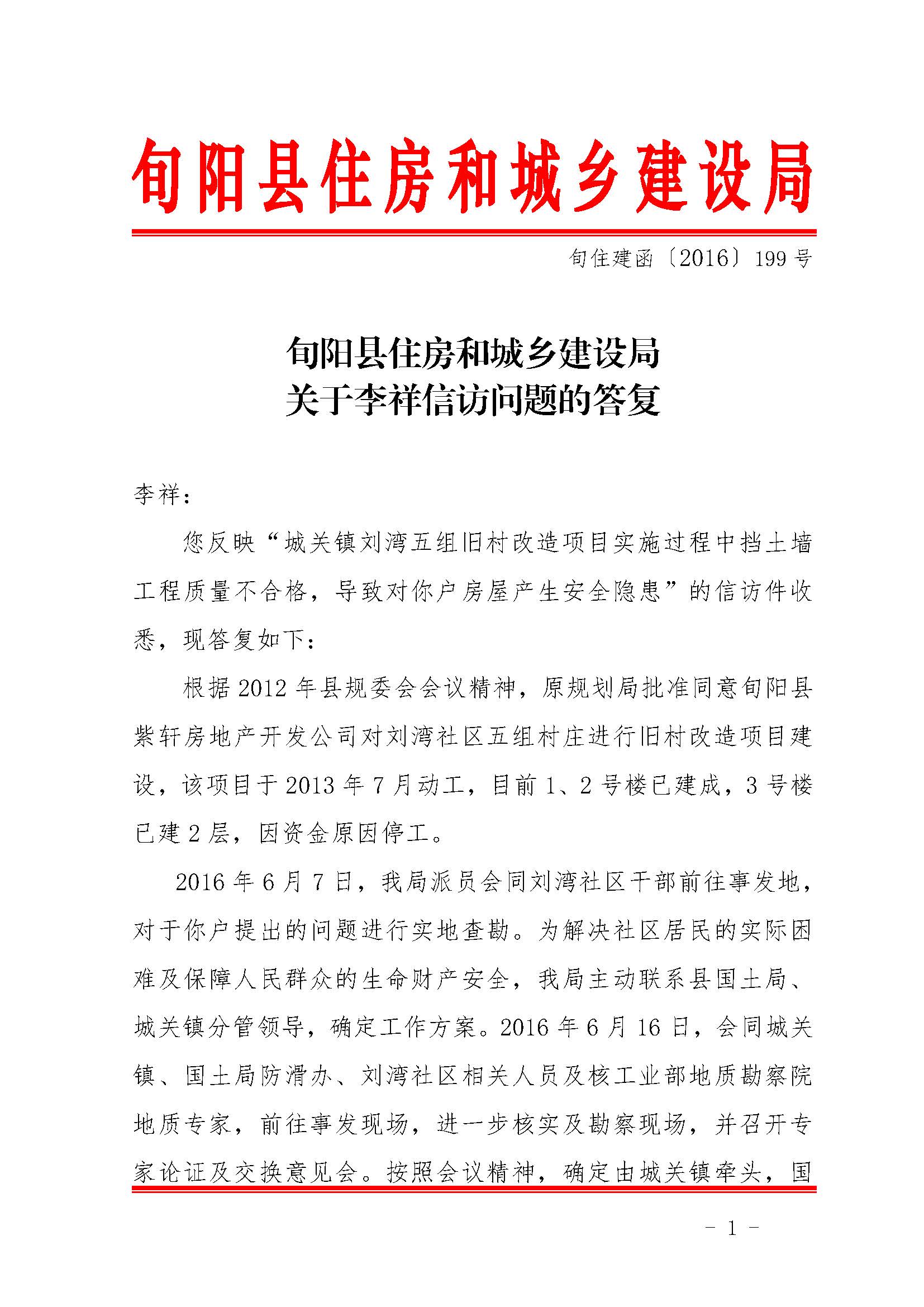 旬陽市住房和城鄉(xiāng)建設(shè)局回復(fù):貴單位輿情調(diào)查函收悉。我局高度重視,及時(shí)同城關(guān)鎮(zhèn)人民政府進(jìn)行了解,現(xiàn)將有關(guān)情況說明如下。
