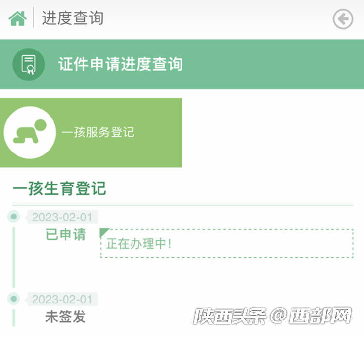 西部網(wǎng)訊(記者 郭佳欣)陜西省生育登記申請(qǐng)明明開(kāi)通了線上辦理平臺(tái),但為何遲遲辦不下來(lái)?近日,西安市民王女士向西部網(wǎng)“民生熱線”欄目反映,自己自去年懷孕以來(lái),先后兩次在網(wǎng)上申請(qǐng)辦理生育登記,但進(jìn)度一直停留在“未簽發(fā)”狀態(tài),始終等不來(lái)一個(gè)結(jié)果。隨后,記者進(jìn)行了調(diào)查了解。
