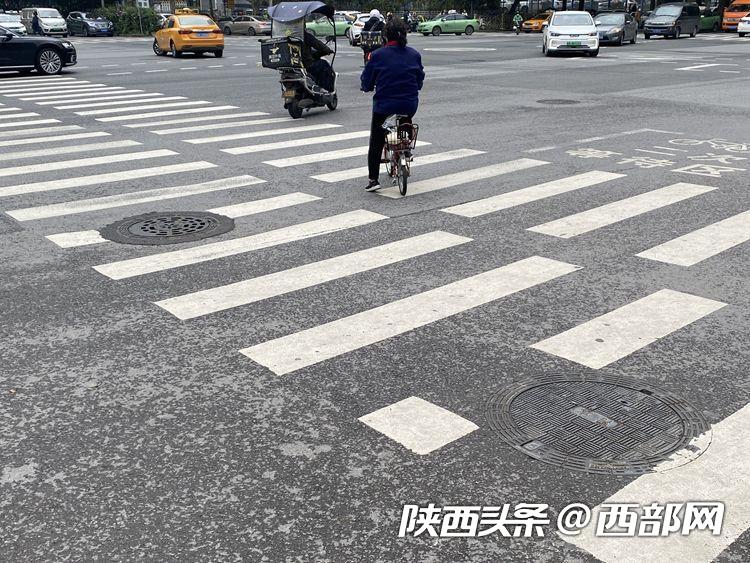 4月24日,西部網(wǎng)·陜西頭條記者進(jìn)行實(shí)地走訪發(fā)現(xiàn),黃雁村十字東北角的斑馬線上確實(shí)有兩個(gè)井蓋。記者觀察到,這個(gè)斑馬線恰好在盛安廣場(chǎng)的門(mén)口,附近人流量大,來(lái)往車(chē)輛絡(luò)繹不絕。此外,記者發(fā)現(xiàn)斑馬線上的井蓋周?chē)休p微的下陷。