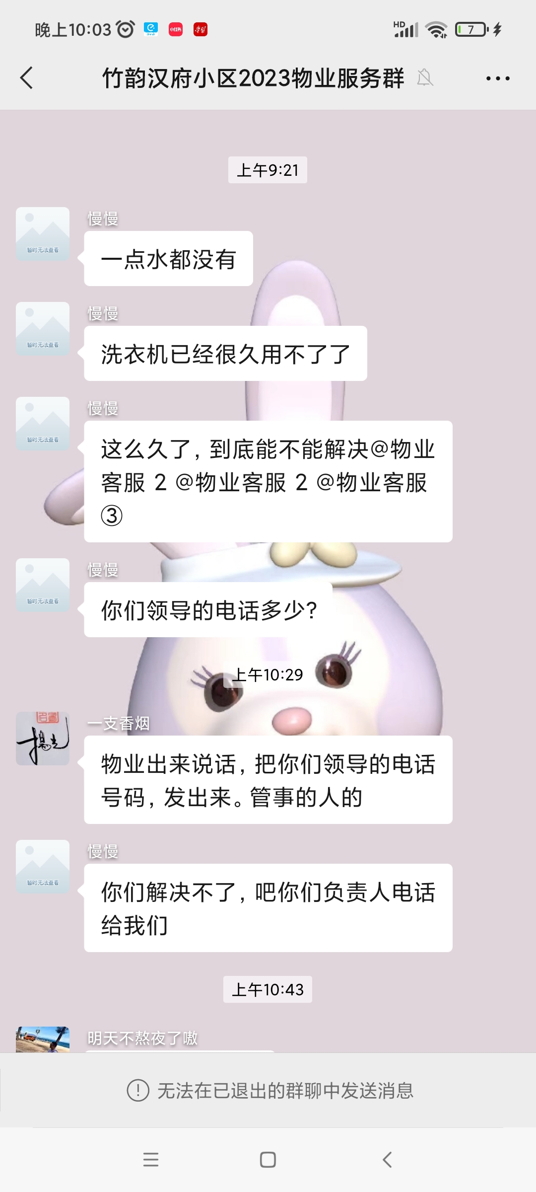 漢臺(tái)區(qū)鋪鎮(zhèn)竹韻漢府供水存在問(wèn)題,現(xiàn)在因?yàn)槲飿I(yè)拖欠水費(fèi)自來(lái)水公司已經(jīng)停水。業(yè)主咨詢(xún)問(wèn)題,物業(yè)直接把業(yè)主群解散了,前前后后小區(qū)業(yè)主已經(jīng)找了很多次,物業(yè)就是不想解決問(wèn)題,推卸責(zé)任。能不能調(diào)查一下,物業(yè)是不是真的拖欠自來(lái)水公司水費(fèi)才停水。