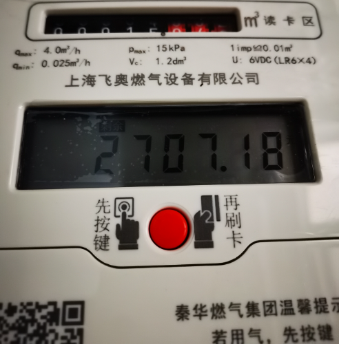 11.8日冬至那天下午啟用了采暖,發(fā)現新表將剩余氣量按原價折算為金額,顯示單價2.18元。