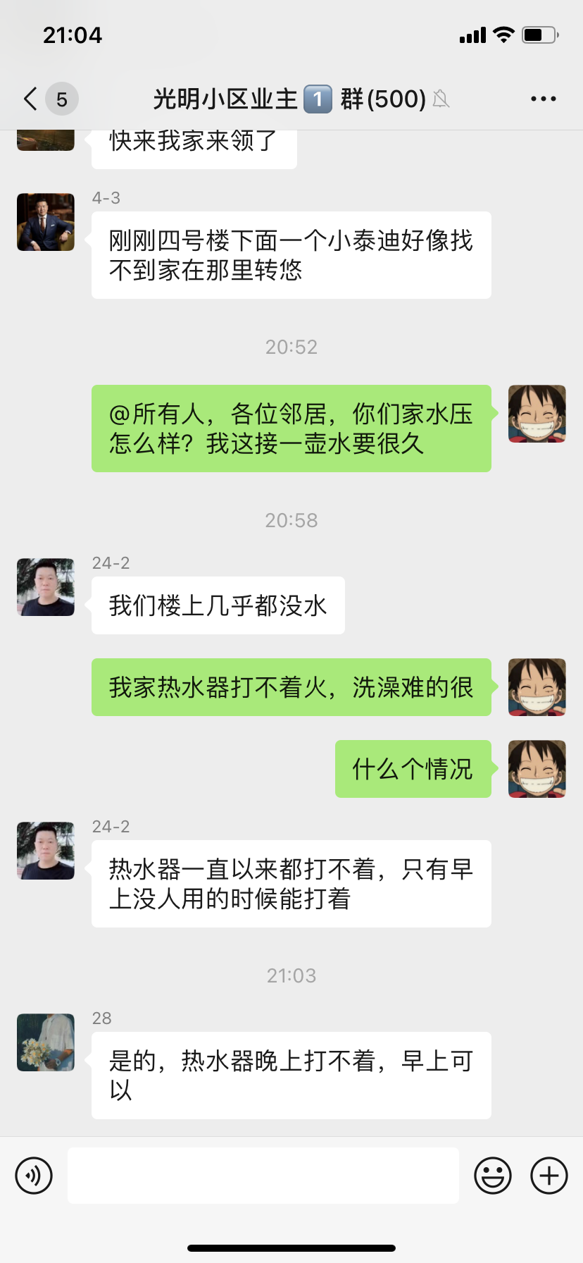 你好,我是光明小區(qū)的業(yè)主,家里的熱水器打火一直都是好的,從12月20來號突然變成打火困難無法洗澡,一問才知道小區(qū)里更多業(yè)主家都是這樣!反應給物業(yè)只說主管道壓力正常,現(xiàn)在不能洗澡嚴重影響居住。有關(guān)部門是否可以解決一下?給一個答復。