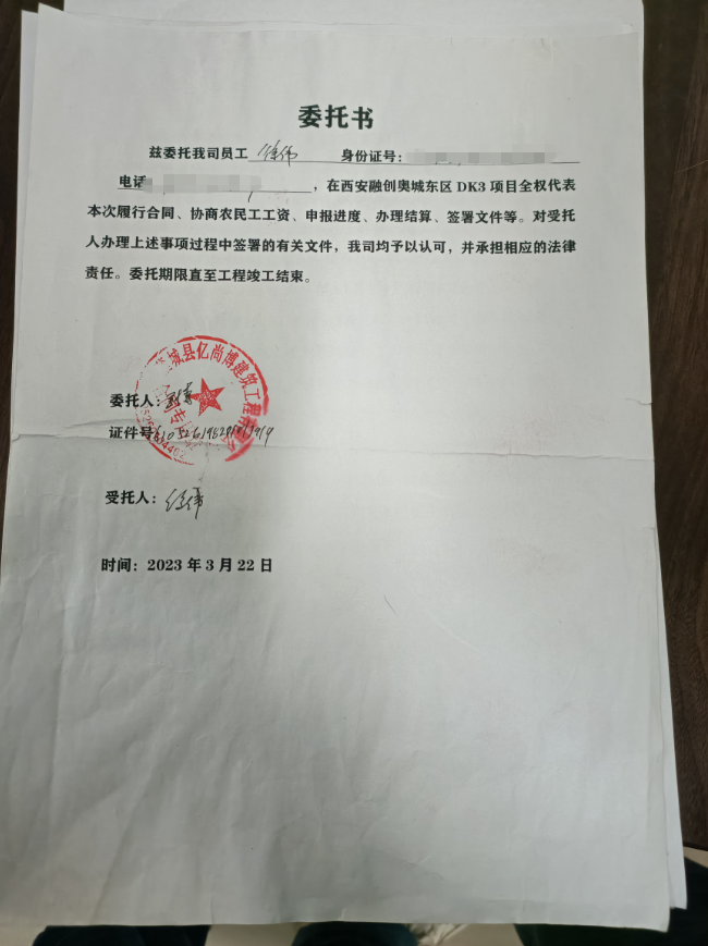 這個項目的勞務(wù)分包公司是蒲城縣億尚博建筑有限公司,該公司委托徐某負(fù)責(zé)工資發(fā)放等事宜。目前徐某不解決欠薪問題,蒲城縣億尚博建筑有限公司老板一直不露面。