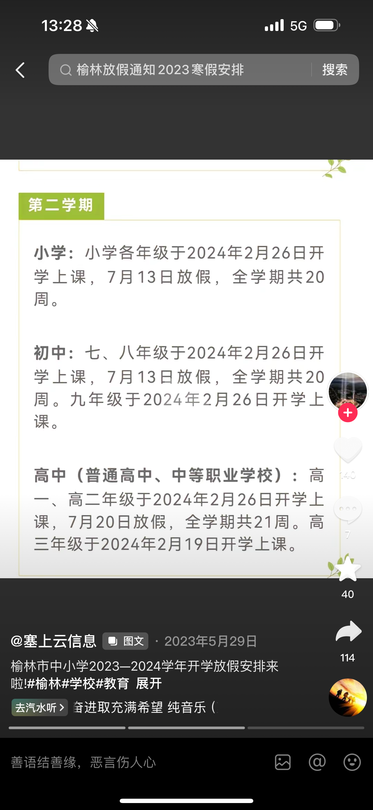 經(jīng)核實(shí),按照《榆林市普通中小學(xué)2023至2024學(xué)年校歷》安排,高三年級(jí)于2024年2月3日(農(nóng)歷臘月二十四)放假,2024年2月19日(農(nóng)歷正月初十)開(kāi)學(xué)上課。為保障高三年級(jí)學(xué)生放假安全,根據(jù)榆林市防災(zāi)減災(zāi)救災(zāi)工作委員會(huì)辦公室《降溫降雪天氣風(fēng)險(xiǎn)預(yù)警提示》《關(guān)于做好1月31日至2月4日降雪大風(fēng)降溫天氣防范應(yīng)對(duì)工作的緊急通知》,并結(jié)合雨雪天氣實(shí)際,我市各高中學(xué)校于2024年2月1日提前2天放假。為彌補(bǔ)提前放假對(duì)高三年級(jí)教學(xué)工作影響和清理高三年級(jí)教學(xué)樓環(huán)境衛(wèi)生,神木中學(xué)在征得家長(zhǎng)和師生同意后,于2024年2月17日提前兩天開(kāi)學(xué)。今后,我市將嚴(yán)格執(zhí)行榆林市校歷安排,并積極向家長(zhǎng)學(xué)生做好溝通解釋工作。