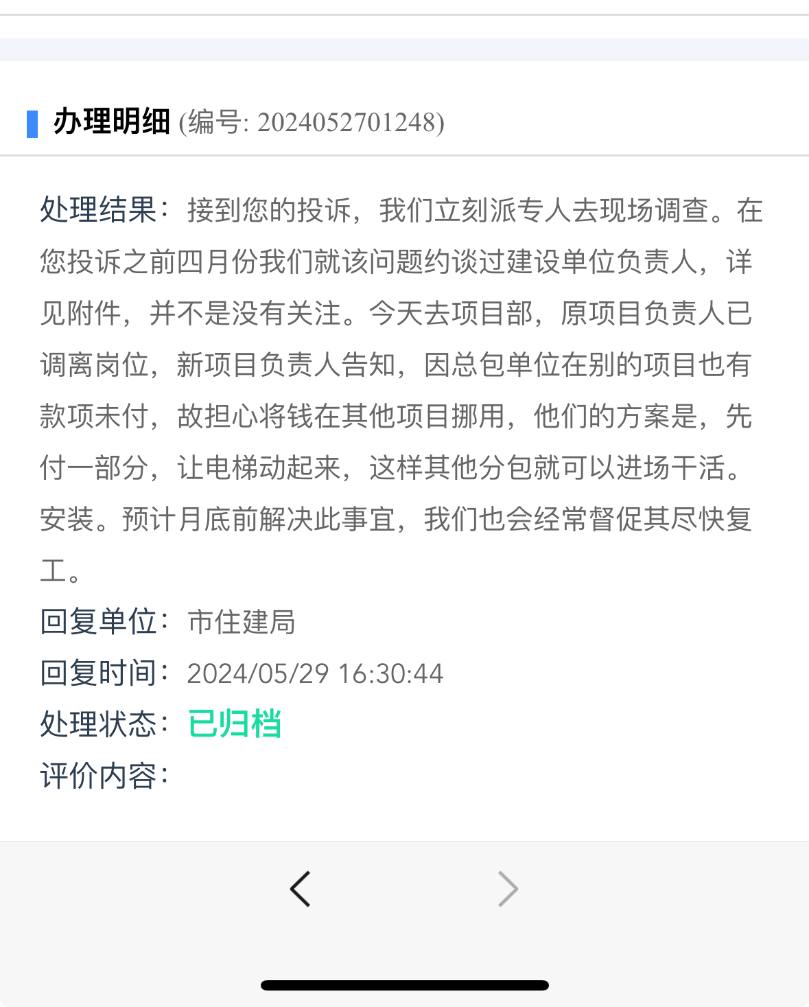 金科一期1批次6#樓和17#樓從去年年底就停工了,到目前仍然沒有復工,每次投訴咸陽12345,回復的話語連標點符號都沒變動一下,說月底先復工一部分都幾個月過去了還是那些話,什么時候才能動工,什么時候才能交房?