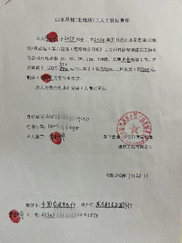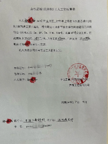 本人和幾個(gè)工友從2023年4月至2024年5月在山水星藝城北地塊項(xiàng)目,西安博信裕通建筑工程有限公司從事水電安裝工作自2023年12月底老板說2024年3月底發(fā)放2023年剩余工資,未發(fā),又哄騙我們干到2024年5月底,合計(jì)工資十七萬余元,說農(nóng)忙發(fā)剩下的工資,經(jīng)多次討要無果,我和幾名工友先后去了航天新城勞動(dòng)監(jiān)察大隊(duì)和管委會(huì)信訪局均無解決辦法,眼看學(xué)生開學(xué)在即,我們現(xiàn)在是要錢無門,希望大家能幫幫我們,在此拜謝??!!