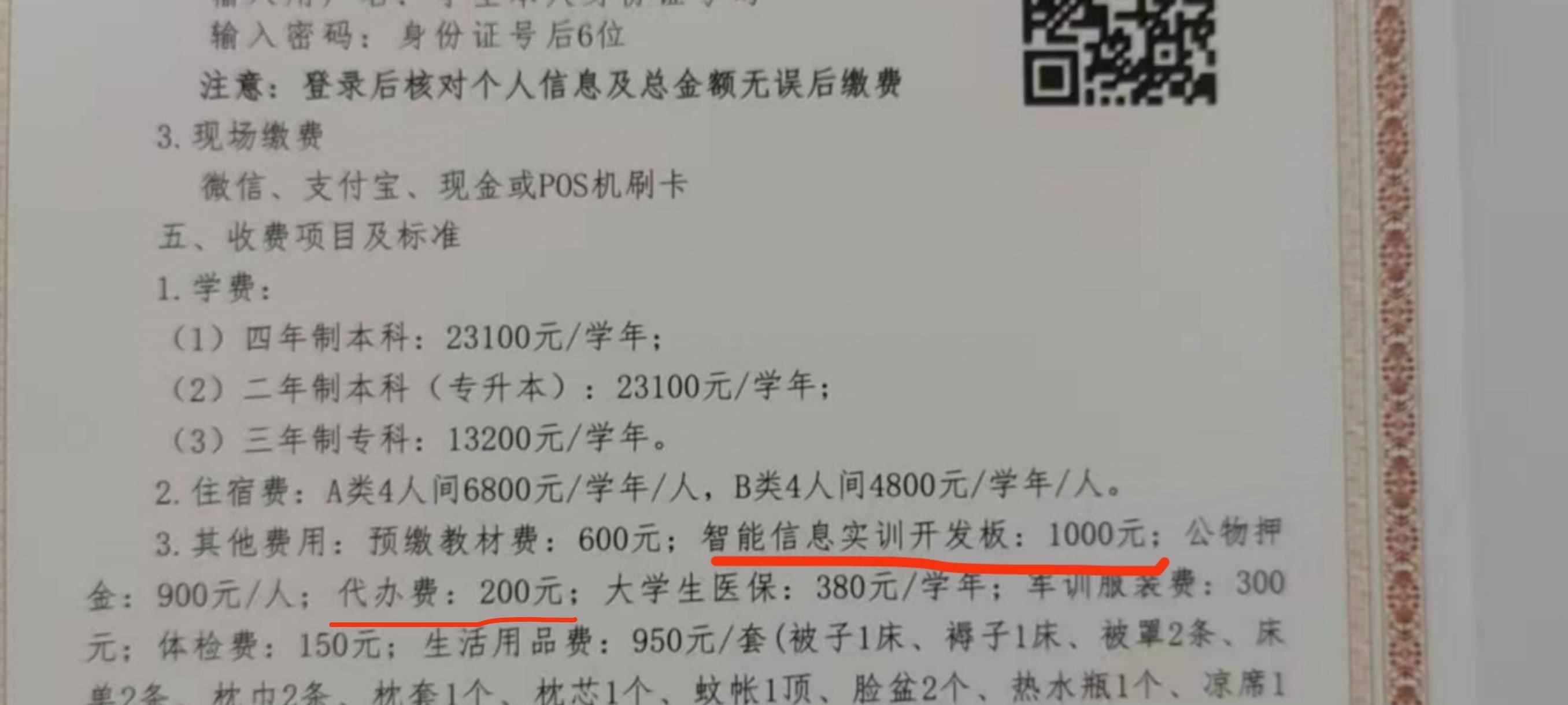 1.今年2024秋季學年,西安信息職業(yè)大學多了一個智能信息實訓開發(fā)板,新生需要1000,老生需要900。請問這個具體收的費用是什么?有人說這個是人臉識別,什么人臉識別需要這么多錢?我認為這方面是學校成立應該承擔的費用,怎么能甩給學生呢?