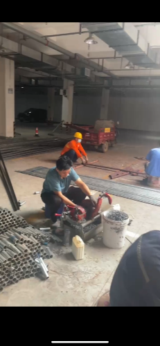 在負(fù)一樓施工,由于空間比較密閉,煙塵很難散發(fā),只有往樓里釋放。而且好幾個(gè)工人在切割和焊接金屬管道,火星子到處飛濺,存在火災(zāi)隱患吧?