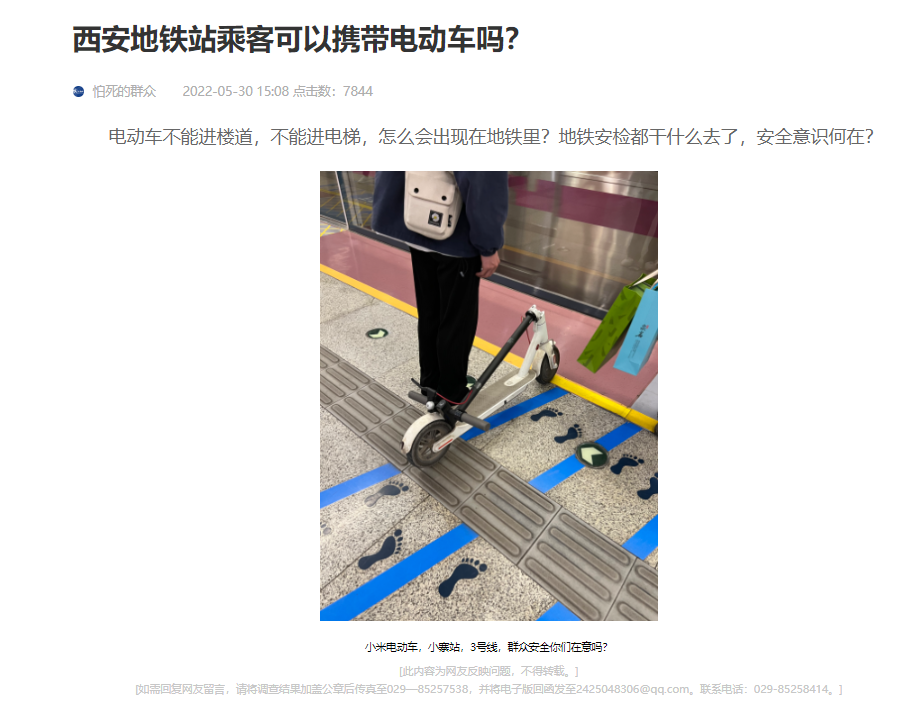 西安市軌道交通集團(tuán)有限公司回復(fù):貴站網(wǎng)絡(luò)輿情調(diào)查函([2024] 10067號(hào))收悉,現(xiàn)就來(lái)函中網(wǎng)友反映的“折疊式電動(dòng)踏板車進(jìn)入地鐵運(yùn)營(yíng)場(chǎng)所”問(wèn)題有關(guān)情況回復(fù)如下: