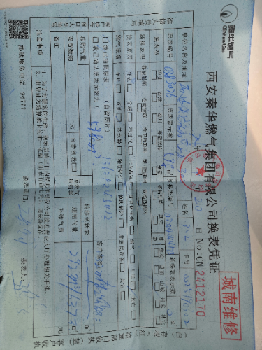 2024年9月20日下午,西安秦華燃?xì)獬悄戏止驹谖餮予F路小區(qū)統(tǒng)一更換完我家天燃?xì)獗砗?,?015年該表就是死表為由自2016年至2023年扣除了我家7年每月10方氣共計(jì)840方結(jié)余天燃?xì)?,否則不予辦理新天燃?xì)獗砜ā?/p>