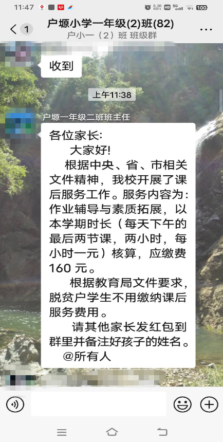 山陽(yáng)縣按照國(guó)家和省市關(guān)于規(guī)范開展中小學(xué)課后服務(wù)工作相關(guān)文件要求,由縣教體局聯(lián)合縣發(fā)改局于2021年印發(fā)了專門文件。關(guān)于課后服務(wù)費(fèi)的收取標(biāo)準(zhǔn)和用途進(jìn)行明確規(guī)定,其中收取標(biāo)準(zhǔn)規(guī)定“農(nóng)村小學(xué)每課時(shí)收費(fèi)1元,一天2課時(shí),每學(xué)期不超過200元,學(xué)期末統(tǒng)一結(jié)算,不足部分不再加收,結(jié)余部分據(jù)實(shí)退費(fèi)。脫貧戶家庭子女免收”。經(jīng)調(diào)查,戶塬小學(xué)嚴(yán)格按照文件規(guī)定,初步核算本學(xué)期共80天,按160元預(yù)收,不屬于違規(guī)收費(fèi)。在操作程序上,學(xué)校于開學(xué)初下發(fā)了《課后服務(wù)征求意見單》,充分征求家長(zhǎng)意見。經(jīng)與投訴人電話核實(shí),反映此問題的主要原因是,其曾在抖音上看到“停止課后延時(shí)服務(wù)”不實(shí)視頻,認(rèn)為學(xué)校在亂收費(fèi)。