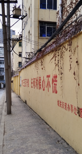目前,因老舊小區(qū)改造墻面粉刷,該條標(biāo)語已不存在。