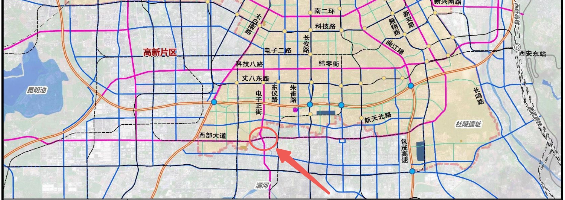 來(lái)函所提道路為規(guī)劃城市快速路(電子南街-靖寧路-城南大道),北起雁南二路,南至南橫線,長(zhǎng)安翠景臺(tái)三、四期位于靖寧路于西長(zhǎng)安街交叉口東北角,靖寧路(即電子南街至城南大道段)北起西部大道,南至西長(zhǎng)安街,于2019年建成通車,目前以城市主干路規(guī)模運(yùn)行。
