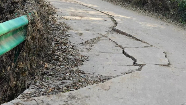 關(guān)于群眾反映“康坡村十二組主路破損”問題,鎮(zhèn)村兩級第一時間采取安全提醒措施,懸掛了安全提醒牌,并在開裂周圍拉了警戒線,并積極與上級部門多次溝通,目前此路段已列入2025年擬建設(shè)項目。