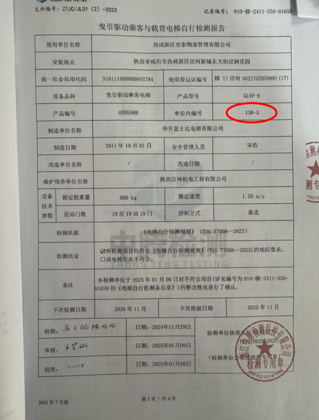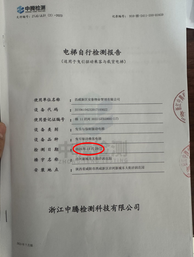 涇陽縣涇潤花園小區(qū)13號樓3單元,電梯顯示下次檢修時間2024年9月,至今未進行任何處理,存在嚴重安全隱患。