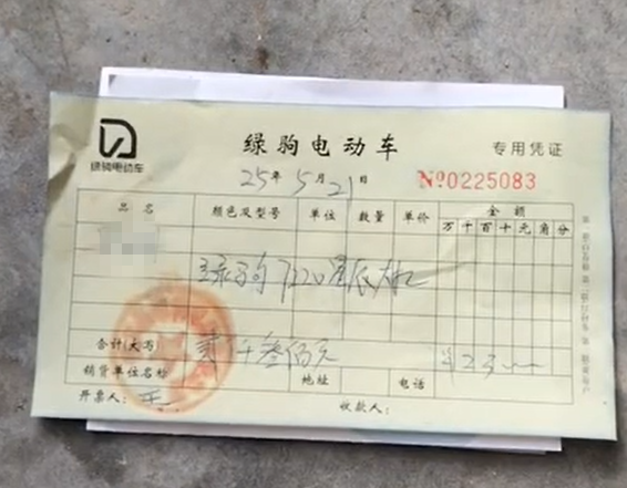 您好,5月21日,家里七旬老人將家里一輛2014年購買的愛瑪舊電動車(車牌號陜C臨021095)托人送到寶雞市扶風縣南大街綠駒電動車店,想換購一輛電動自行車,可氣的是最后買的是一輛72v、20A的電動二輪摩托車,舊電動車折舊600元,新車花費2300元,未開正式發(fā)票。