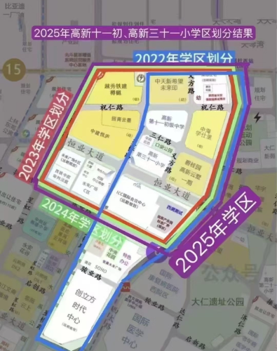 2023年小區(qū)交房時(shí),周邊無任何已交付樓盤,甚至連工地都還在施工。但高新區(qū)教體局卻把我們劃到了幾公里外的學(xué)校,反而將尚未動(dòng)工的碧桂園云墅小區(qū)、中海學(xué)仕里樓盤等規(guī)劃項(xiàng)目劃入學(xué)區(qū)(附當(dāng)年劃分文件截圖)。我們拿著購房合同去咨詢,得到的答復(fù)是“按規(guī)劃來”,但規(guī)劃里的房子連地基都沒打,我們的孩子卻面臨無學(xué)可上的困境。