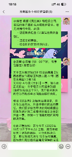 2025年10月10號]起,西安青年易居住房租賃有限公司房管在微信群里通知房東要收回該房屋,導(dǎo)致我無法正常居住。我多次通過微信、電話等方式與房管溝通,但他們均未解決。根據(jù)合同第九條違約責(zé)任中的第二條規(guī)定,租賃期間,甲方不得無故收回房屋,如因特殊原因,中途需將房屋收回應(yīng)提前30日通知乙方并退款剩余租金及保證金。但經(jīng)多次溝通,被告拒絕退還剩余租金及相關(guān)保證金。