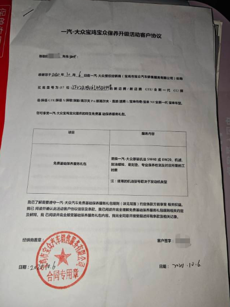 2020年10月,我在一汽大眾寶雞寶眾4S店買了汽車終身保養(yǎng),并簽訂協(xié)議,我只用了首保和自費(fèi)的四次保養(yǎng),期間4S店老板換人了,導(dǎo)致我的汽車終身保養(yǎng)不能使用。打電話給前任老板,明確告知我就是不能用。