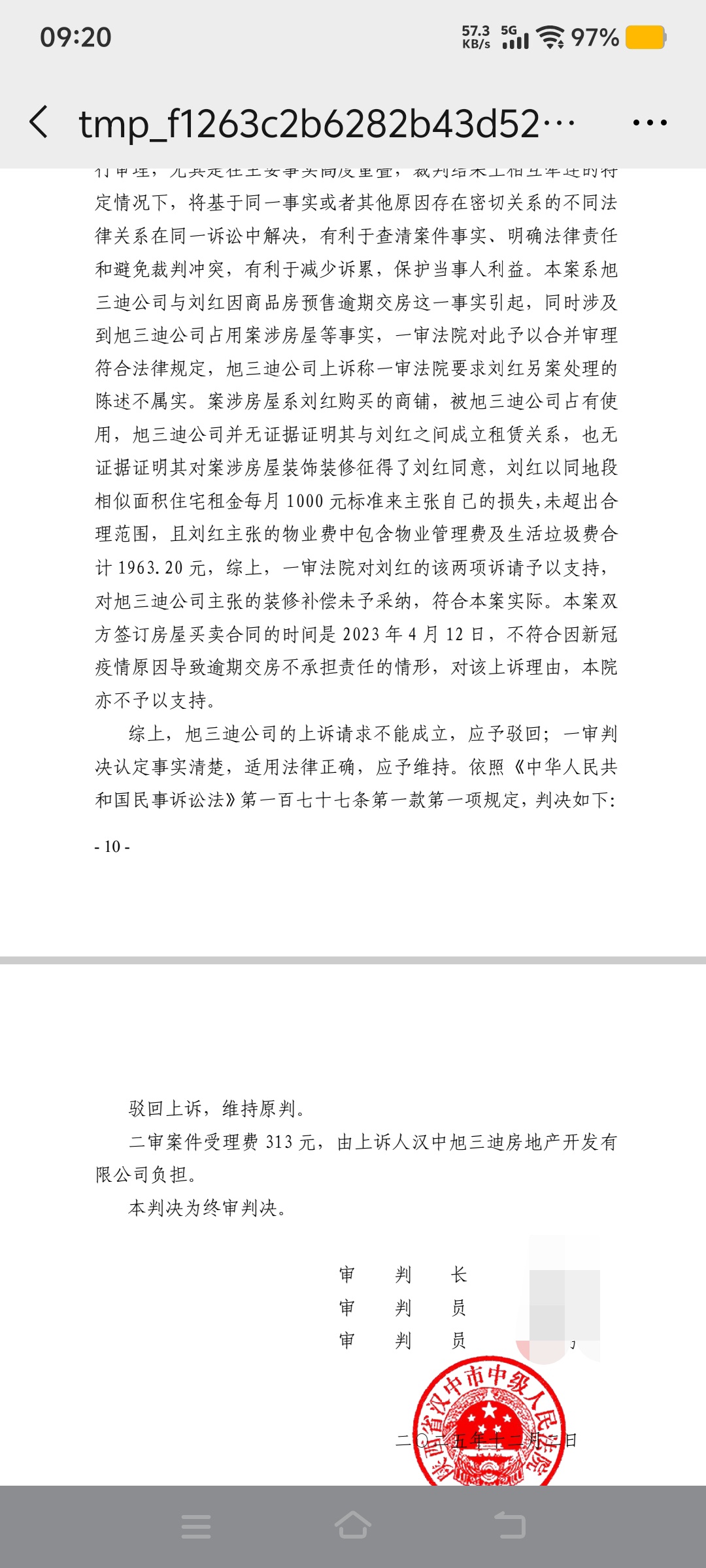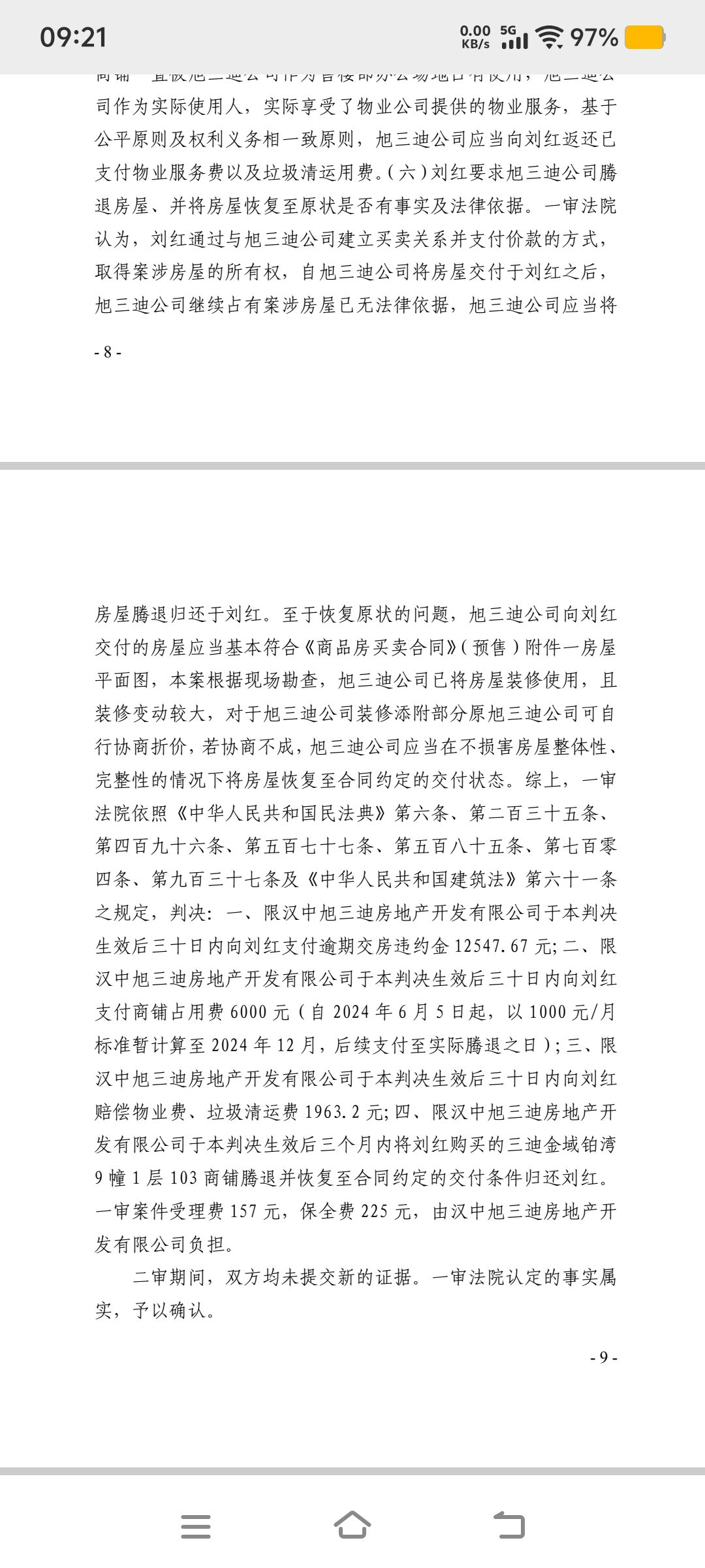 我是漢中三迪金域鉑灣小區(qū)9 號樓103商鋪業(yè)主,(2025)陜07民終1236號案件當事人,二審法院已于2025年12月2日作出維持原判的判決,判令漢中旭三迪房地產(chǎn)公司:1、在3個月內完成商鋪騰退,修建103商鋪隔墻并恢復成合同狀態(tài),注:商鋪層高4.5米。2、三十日之內支付逾期交房違約金12547.67元。3.、支付商鋪占用費。4,退還2024-2025年物業(yè)費。