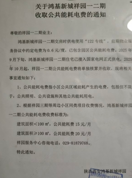 西安高新區(qū)鴻基新城祥園物業(yè)收取公共能耗電費(fèi)是否合理?